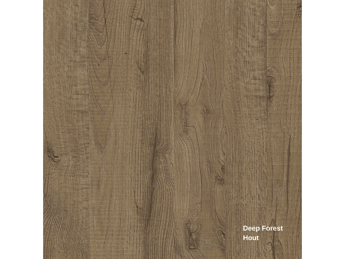 Beleef de authentieke schoonheid van Deep Forest. Deze kleur heeft een natuurlijke bruintint met een matte afwerking die het karakter van echt hout benadrukt. Het unieke reliëf geeft een doorleefde, rustieke uitstraling, en de matte optiek versterkt de natuurlijke textuur.