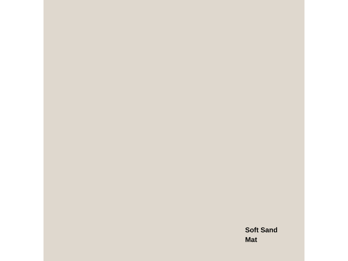 Ontdek de verfijning van Soft Sand. Deze kleur heeft een ultra matte afwerking die een minimalistische en strakke uitstraling biedt. De natureltint creëert een subtiele, neutrale basis die perfect past in strakke interieurs en eenvoudig te combineren is met andere kleuren en materialen. Soft Sand voegt een rustige, elegante sfeer toe aan elke ruimte.