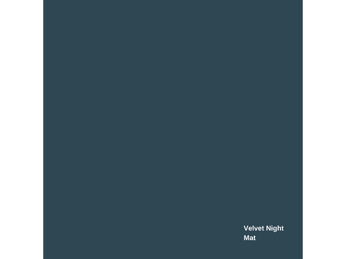 Ontdek de luxe van Velvet Night. Deze kleur heeft een diep nachtblauw met een fluweelzachte textuur. De egale kleur voegt een moderne en elegante touch toe aan elk interieur, terwijl het eenvoudig te combineren is met andere kleuren en materialen.